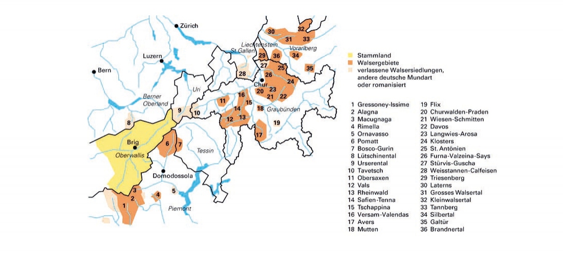 In Vorarlberg sind das Große und das Kleine Walsertal, der Tannberg (Lech, Warth, Schröcken), das Silbertal, Laterns, Damüls, Ebnit und zu guter Letzt natürlich das Brandnertal Walsergebiete.